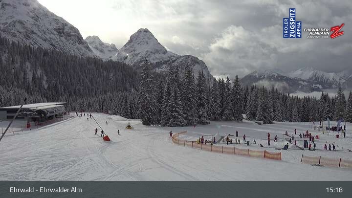Webcam Sicht auf das Kinderland an der Ehrwalder Alm, 1,491 m