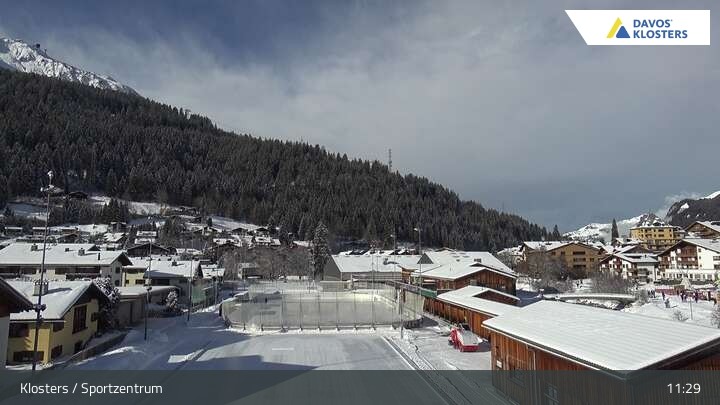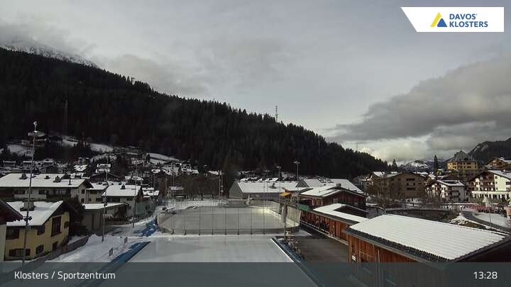 Hier siehst du das Sportzentrum und das Freibad in Klosters