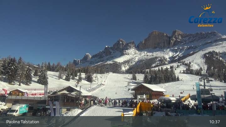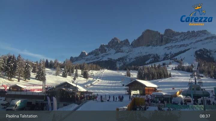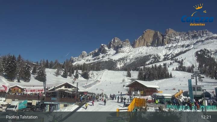 Hier siehst vom Tal in Karersee zur Rotwand.