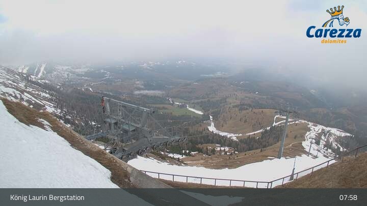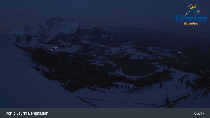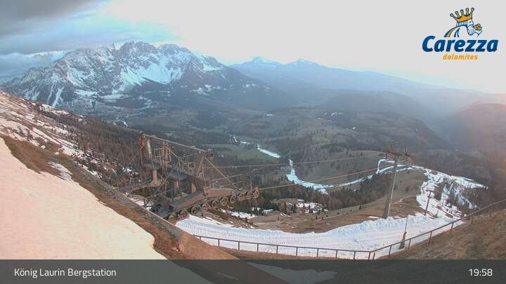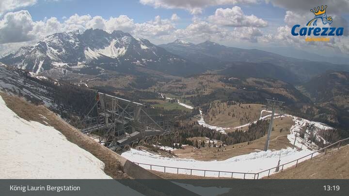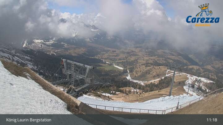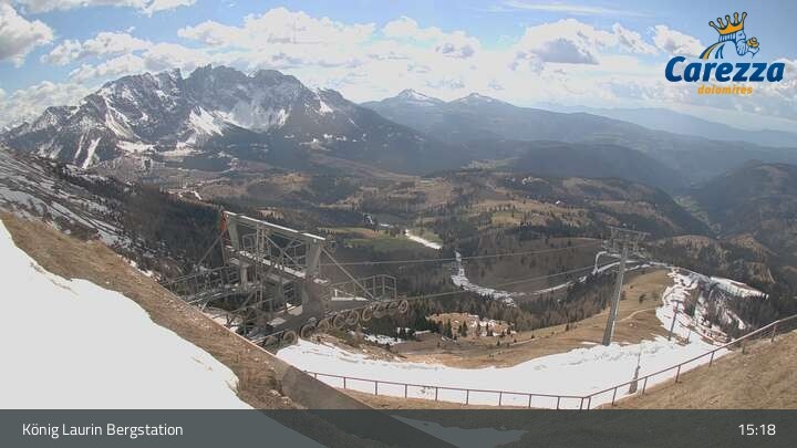 Die Webcam eröffnet von der Kölner Hütte das Panorama zum Latemar. Du siehst hier auch gut die neue König Laurin Gondelbahn mit unterirdischer Bergstation.