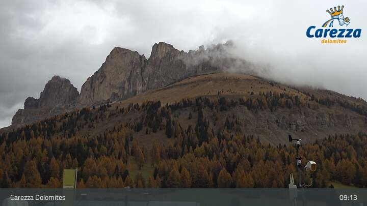 Hier siehst du die Talstation des Sessellifts Pra di Tori sowie die Berge von Carezza