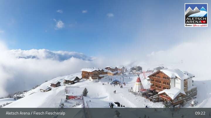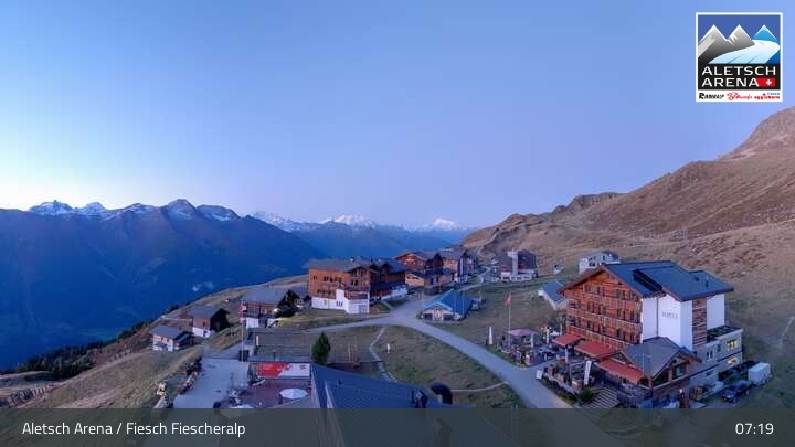 Webcam Aletsch Arena: Blick auf die Fiescheralp, 2,220 m