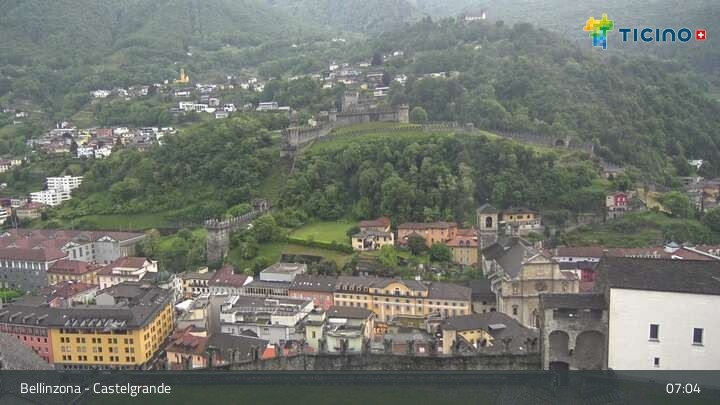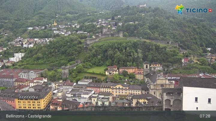Die Webcam blickt auf die Höhenburg Castelgrande in Bellinzona, dem Hauptort des Kantons Tessin in der Schweiz. Sie gehört seit 2000 zum UNESCO Weltkulturerbe.