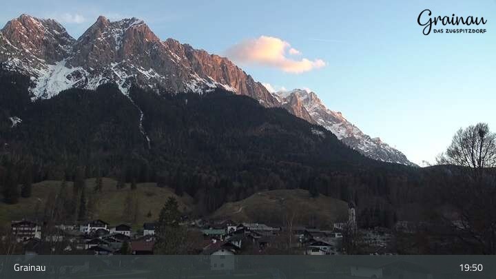 Die Live-Webcam zeigt vom Freibad aus einen Rundumblick auf das Bergdorf Grainau und seine Umgebung. Zu sehen sind unter anderem die Zugspitze, der große und kleine Waxenstein sowie der Hohe Ziegspitz.