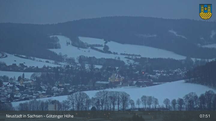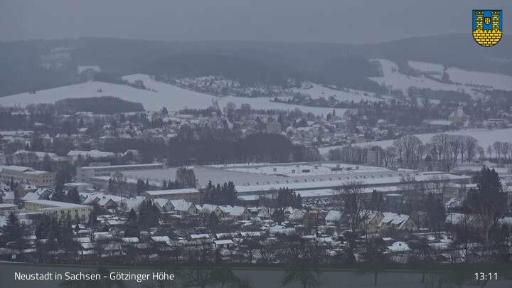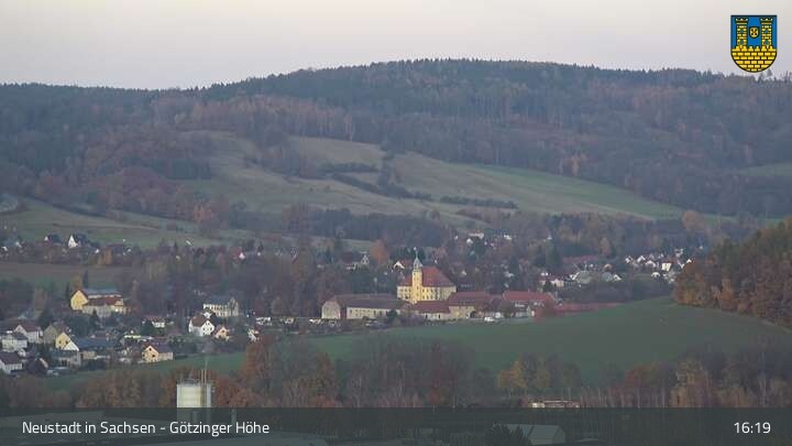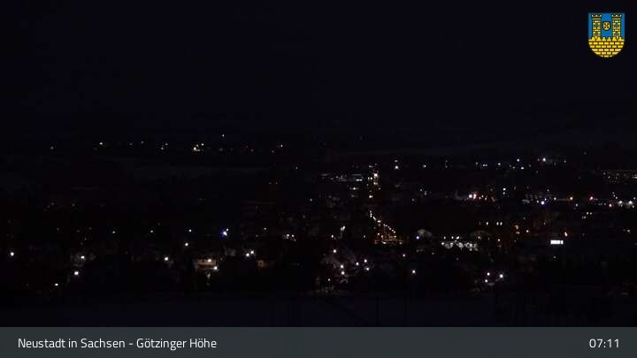 Hier siehst du Neustadt in Sachsen, eine Kleinstadt im Elbsandsteingebirge. Die Webcam befindet sich südlich der Stadt an der Götzinger Höhe.
