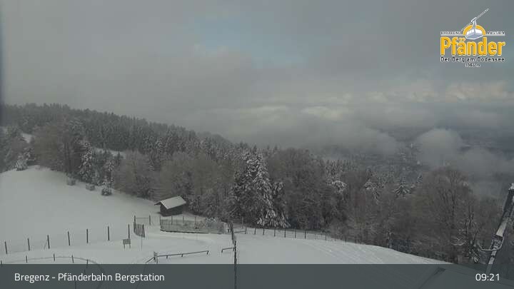 Die Video-Webcam zeigt einen traumhaften Panoramablick von der Bergstation am Pfänder hinunter auf den Bodensee und die Stadt Bregenz.