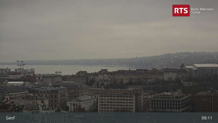 Hier siehst du den Blick vom RTS (Radio Télévision Suisse) Hochhaus in der Schweizer Stadt Genf.