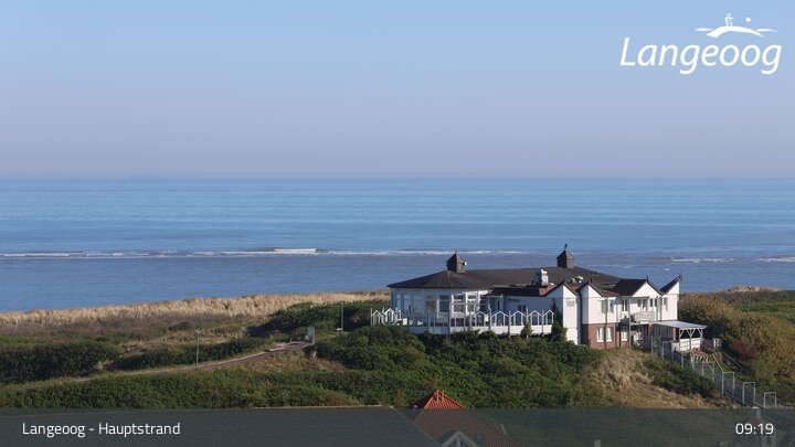 Zu sehen ist das Hauptbad in Langeoog und der lange Badestrand auf der ostfriesischen Insel.