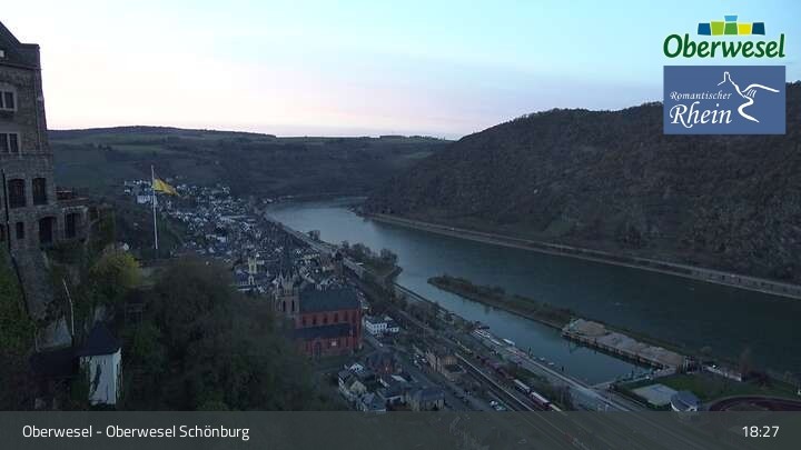 Die Webcam blickt über die Schönburg im rheinland-pfälzischen Oberwesel auf den Rhein. Die Höhenburg stammt aus dem 12. Jahrhundert.