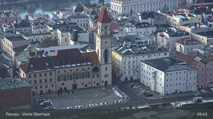 Die Webcam zeigt einen tollen Panoramablick von der Veste Oberhaus auf die Donau und die Altstadt von Passau. Neber der herrschaftlichen Burgfassade sieht man sehr gut die Landzunge zwischen Donau und Inn, auf der die Altstadt mit ihren denkmalgeschützten Häusern liegt. Gut zu erkennen sind unter anderem die Ortspitze am Zusammenfluss der drei Flüsse, das an der Donau liegende Rathaus, der weiße Dom St. Stephan und das erhöhte Kloster Mariahilf in der Innstadt.