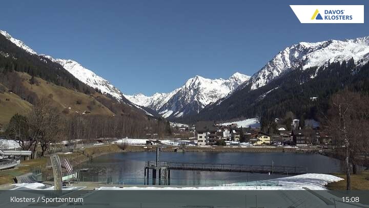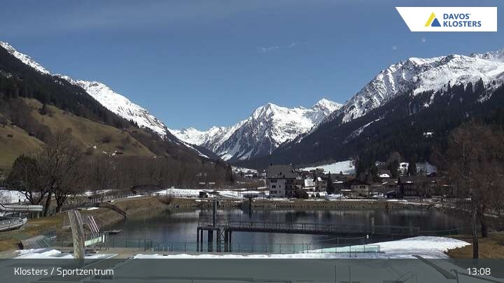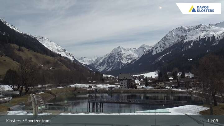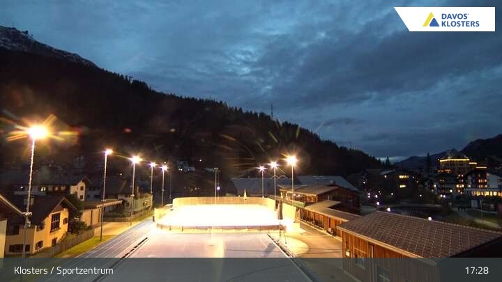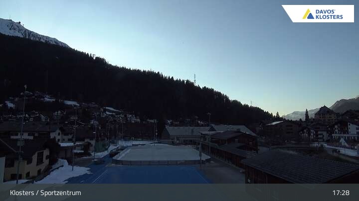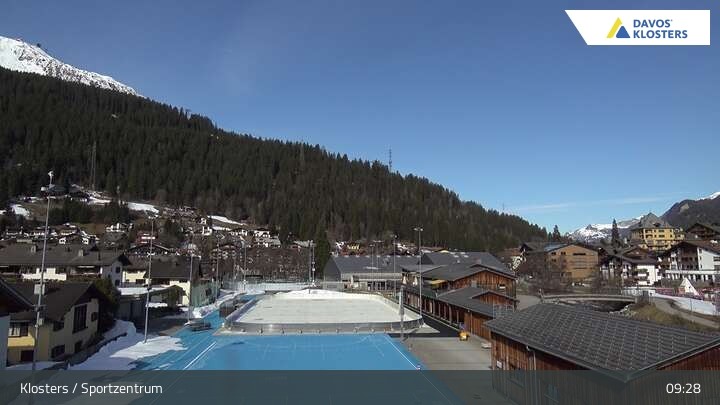 Hier siehst du das Sportzentrum und das Freibad in Klosters