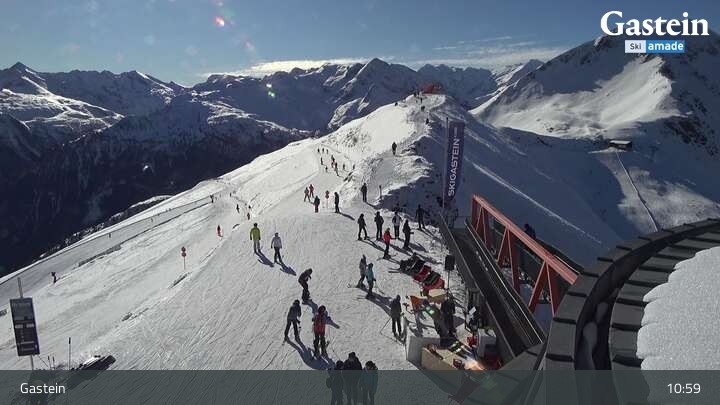 Die Webcam blickt von der Südseite der Bergstation am Stubnerkogel auf die umliegende Bergwelt von Bad Gastein.