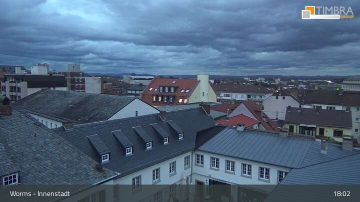 Die Webcam befindet sich in der Wormser Innenstadt. Der Blick wandert von der Magnuskirche, hinter welcher die Türme des Wormser Doms St. Peter zu sehen ist über die Dächer der Stadt bis zum Andreasstift und der Stadtmauer.