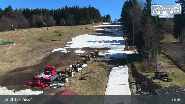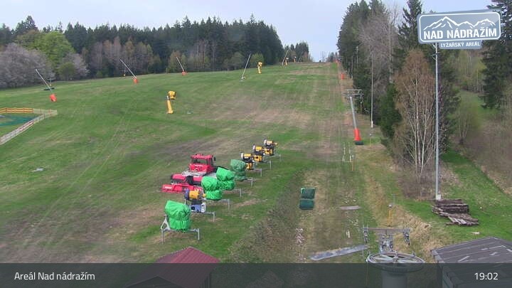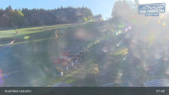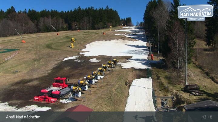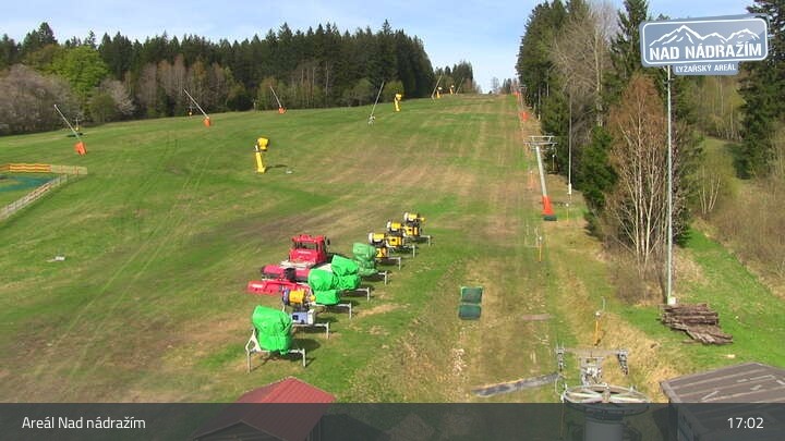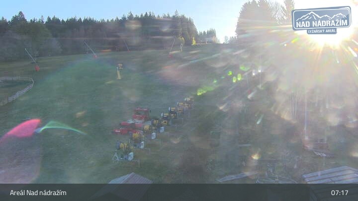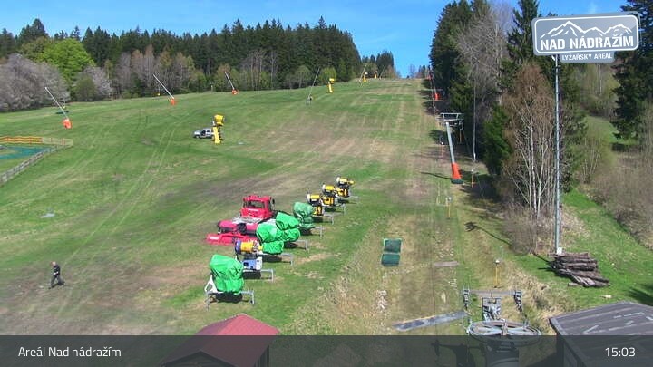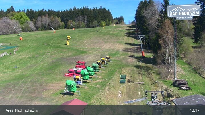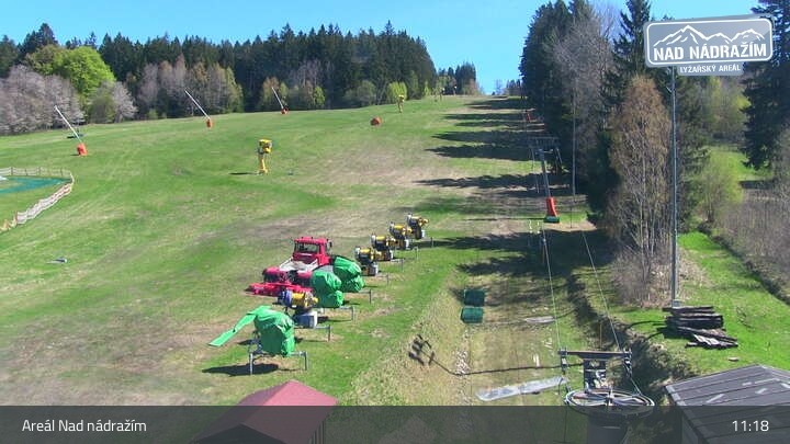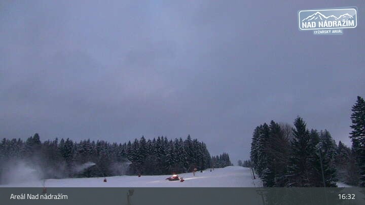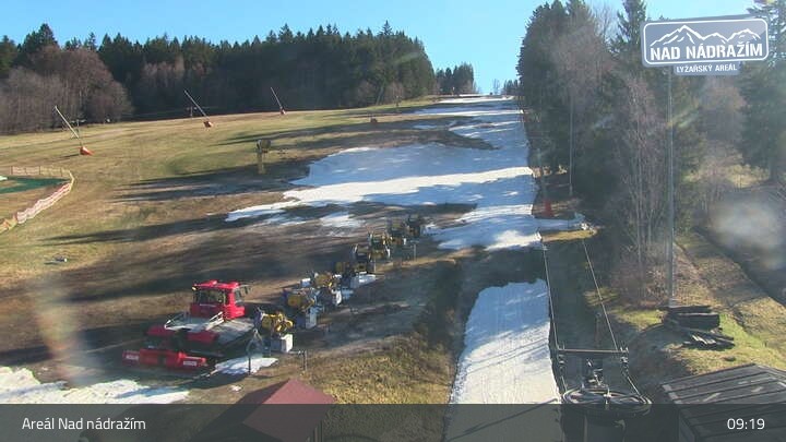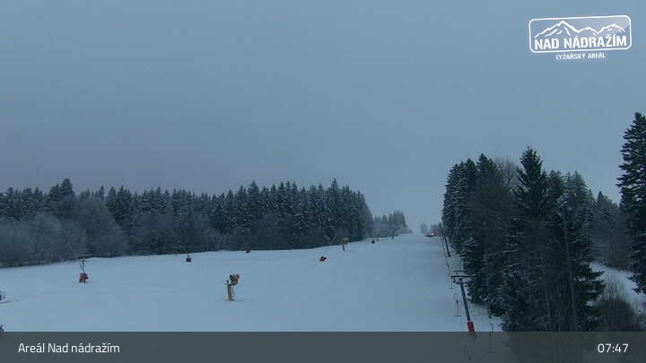 Die Webcam zeigt die Skilifte im Areal Nad nádražím bei Železná Ruda nahe der deutschen Grenze.