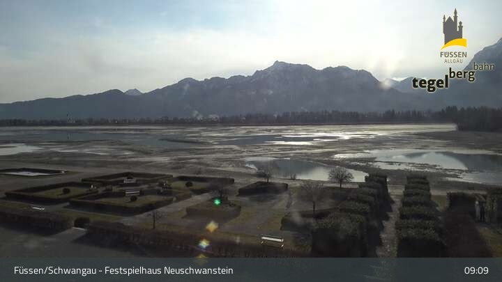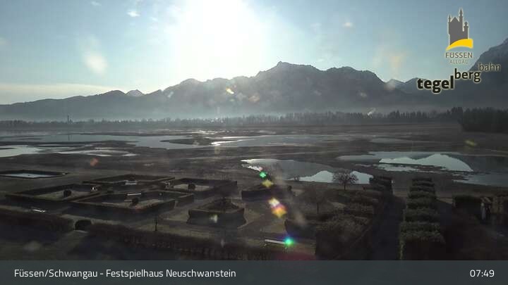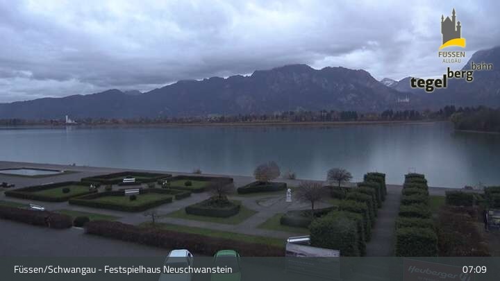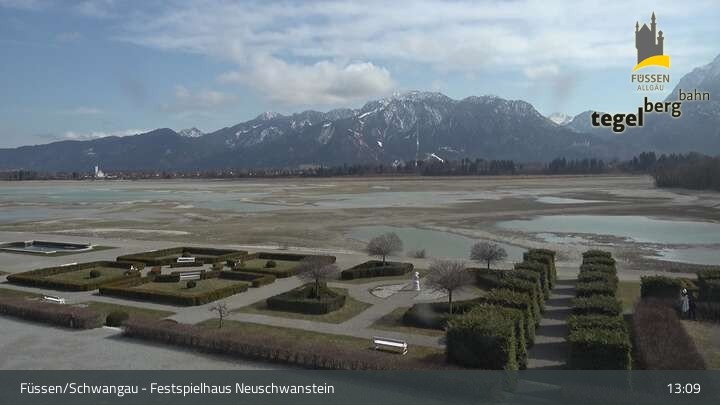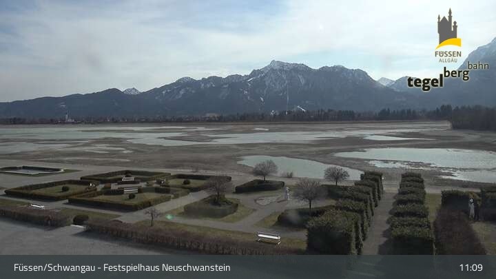 Die Webcam blickt auf den Garten von Ludwigs Festspielhaus in Füssen am Forggensee.