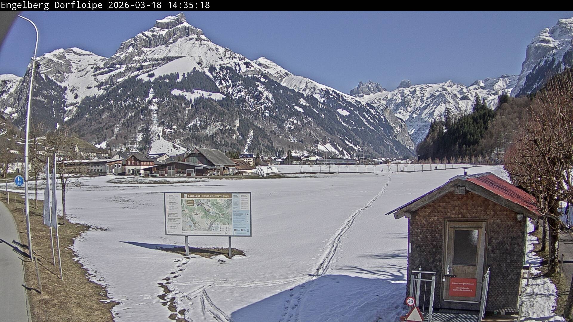 Die Webcam befindet sich in Engelberg und zeigt die Erlenwiese. Im Winter befindet sich dort die Dorfloipe zum Langlaufen.