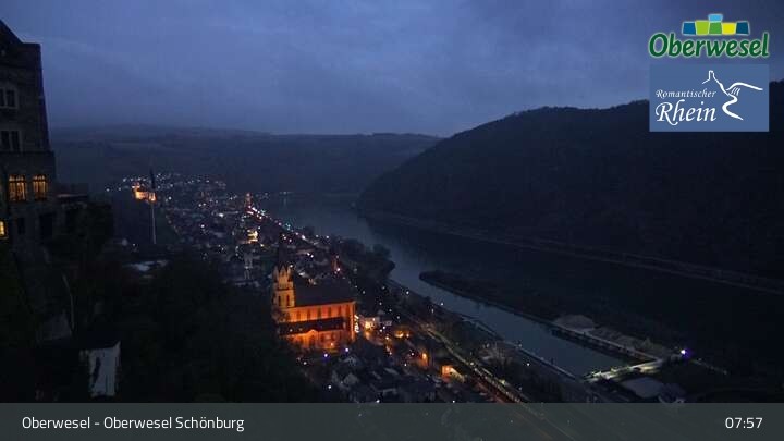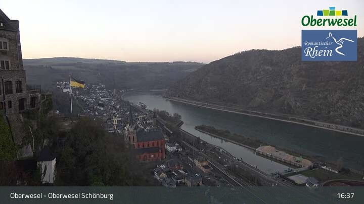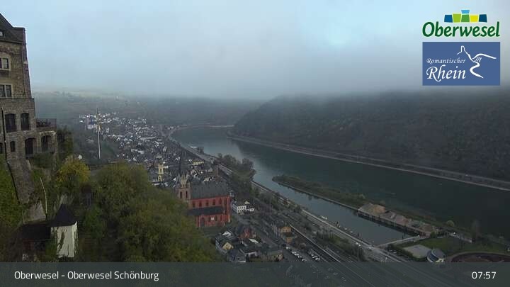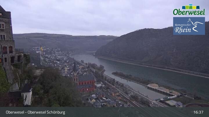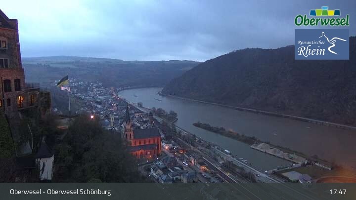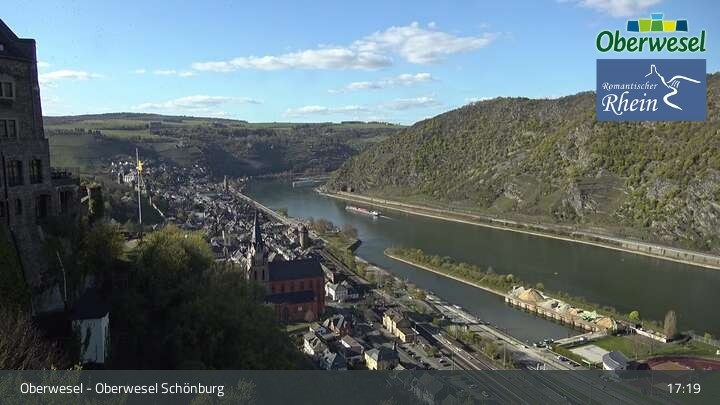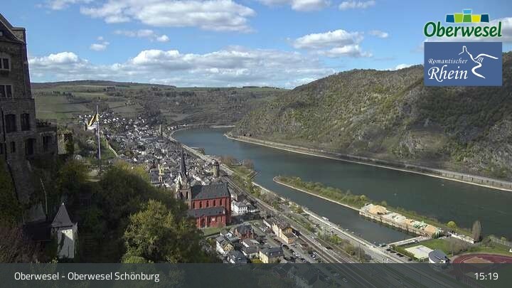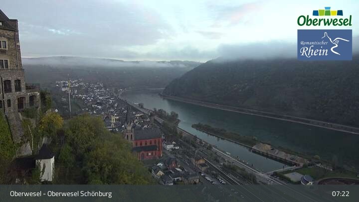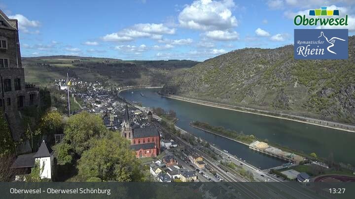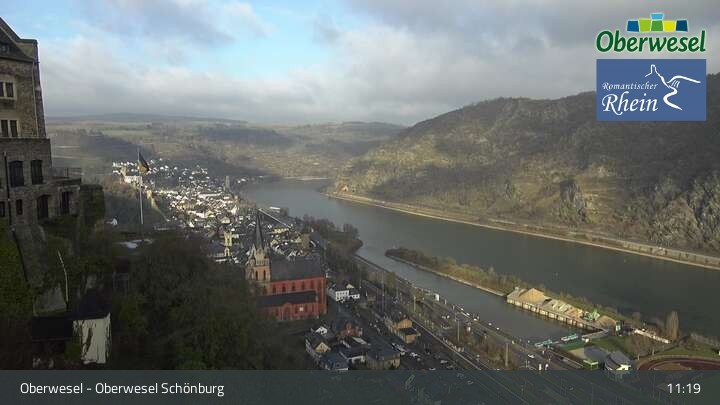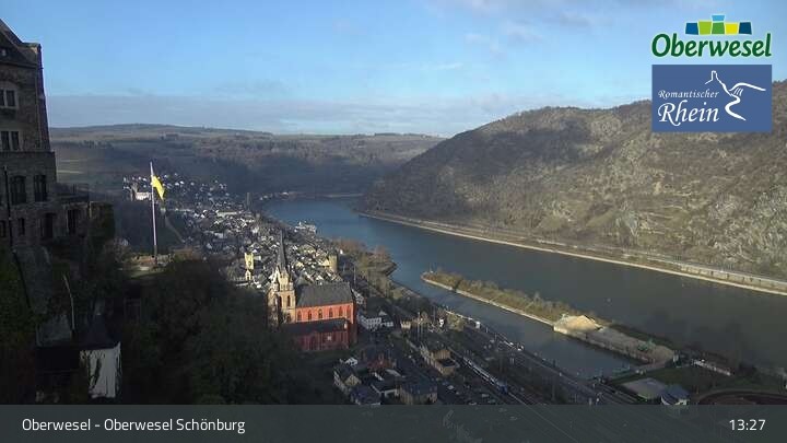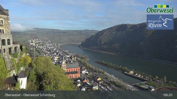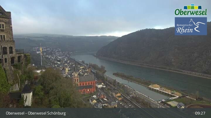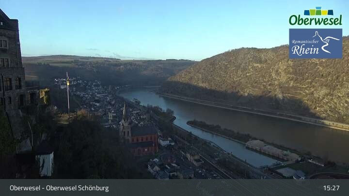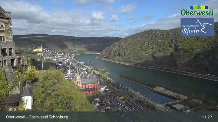 Die Webcam blickt über die Schönburg im rheinland-pfälzischen Oberwesel auf den Rhein. Die Höhenburg stammt aus dem 12. Jahrhundert.