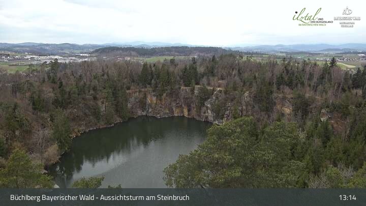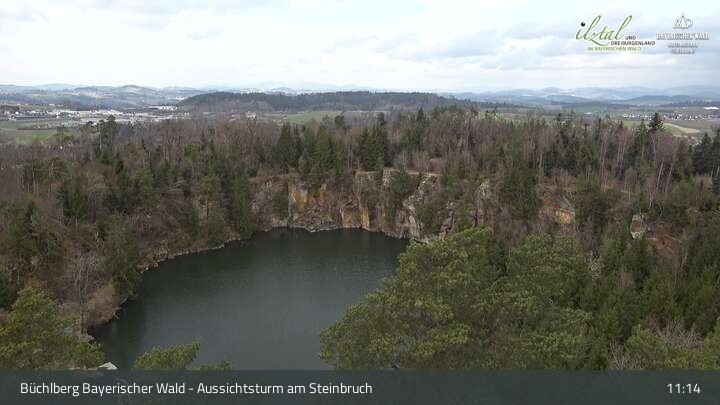 Webcam Büchlberg und Steinbruchsee vom Aussichtsturm, 527 m