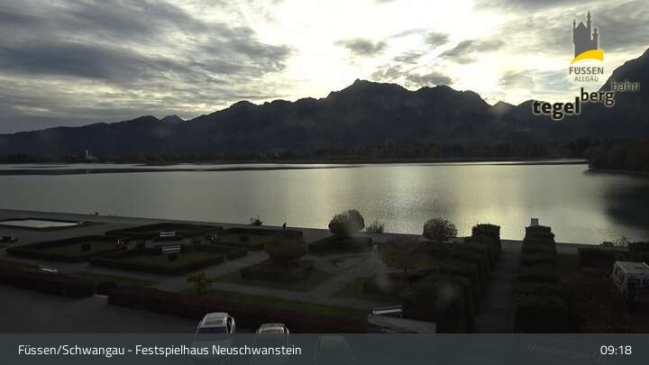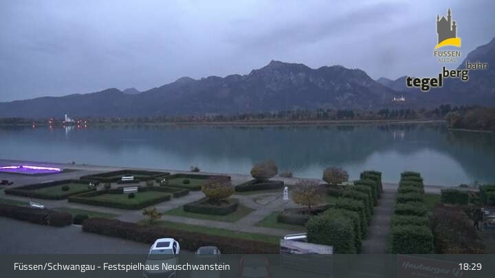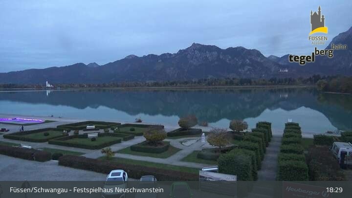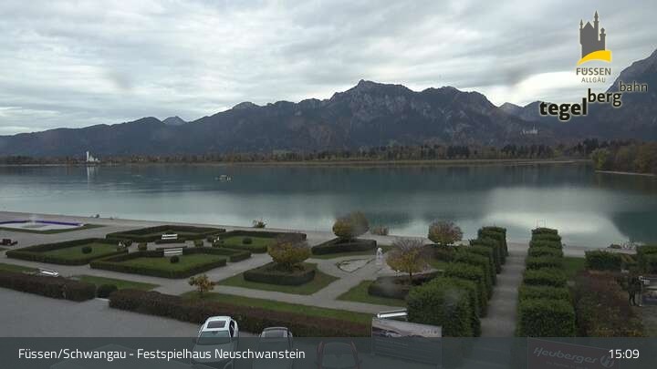 Die Webcam blickt auf den Garten von Ludwigs Festspielhaus in Füssen am Forggensee.