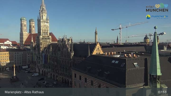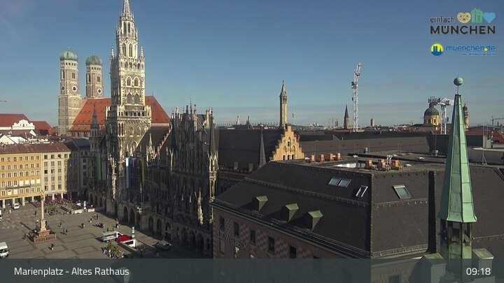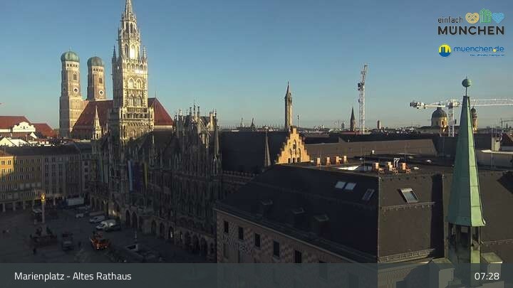 Die Webcam blickt vom Alten Rathaus auf den Marienplatz, der zentrale Platz der Münchener Innenstadt.