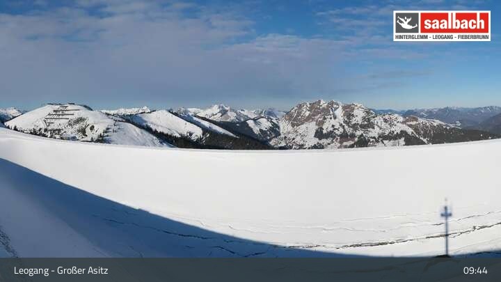 Blick vom Großen Asitz in Leogang auf die umliegende Bergwelt.
