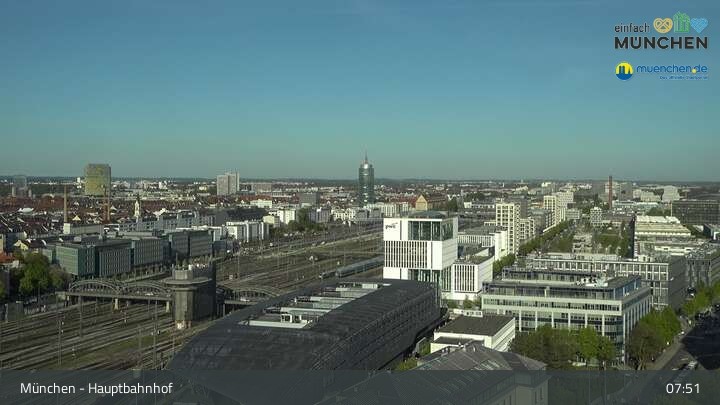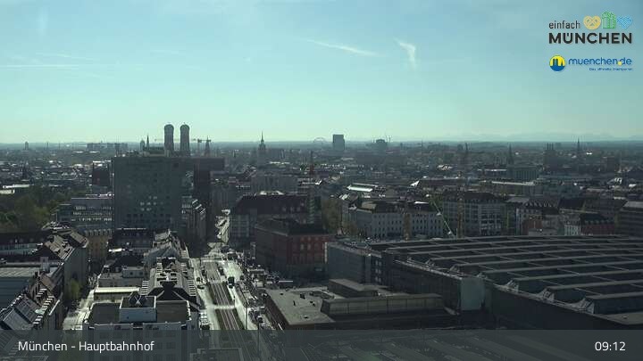 Diese Webcam zeigt dir einen Livestream über die Dächer von München, der Landeshauptstadt von Bayern und eine der größten Städte Deutschlands. Zu sehen ist das Areal des Hauptbahnhofes.
