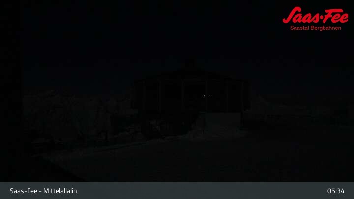 Diese Webcam auf dem Mittelallalin, einem Nebengipfel des Allalinhorns in Saas-Fee zeigt das Drehrestaurant, von dem aus man die Aussicht auf die umliegenden Walliser Alpen genießen kann.