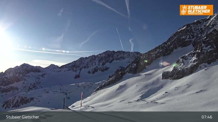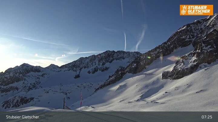 Die Kamera befindet sich an der Bergstation der Eisgrat Gondel am Stubaier Gletscher.