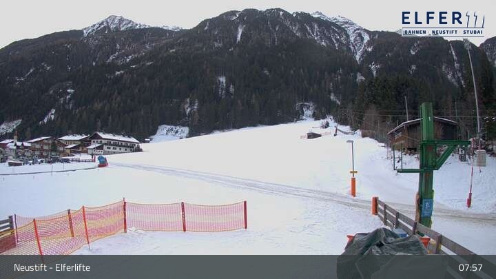 Die Webcam befindet sich in Krössbach bei Neustift - Hochstubai und zeigt das Übungsland des Skigebiets.