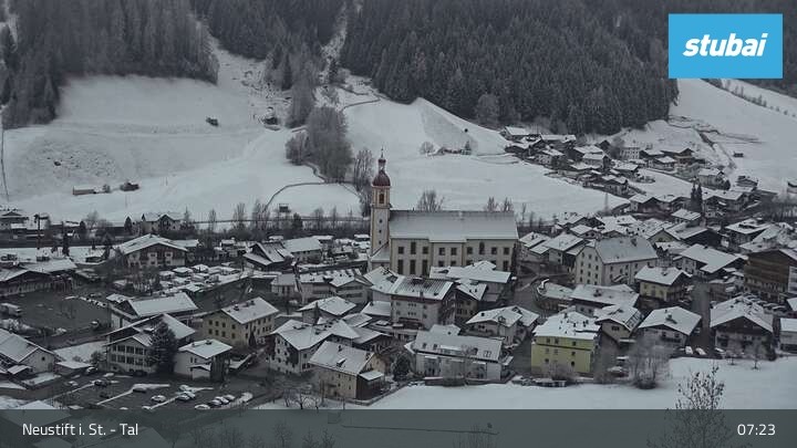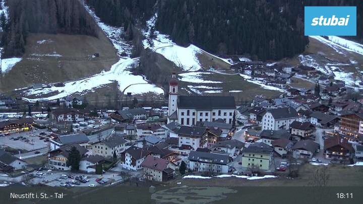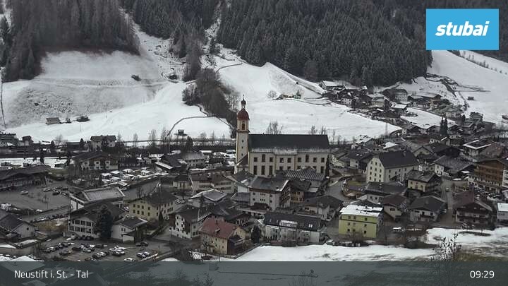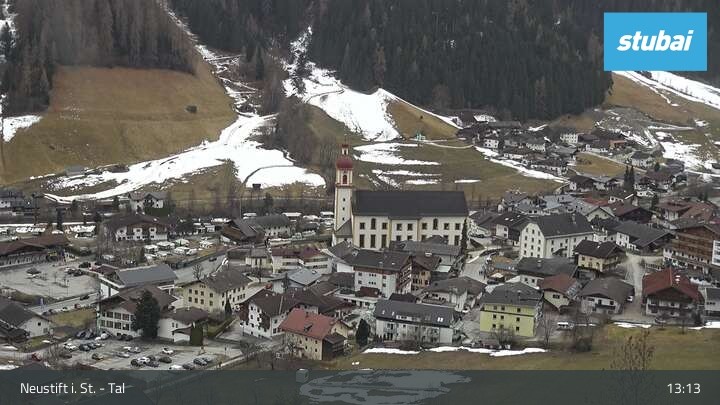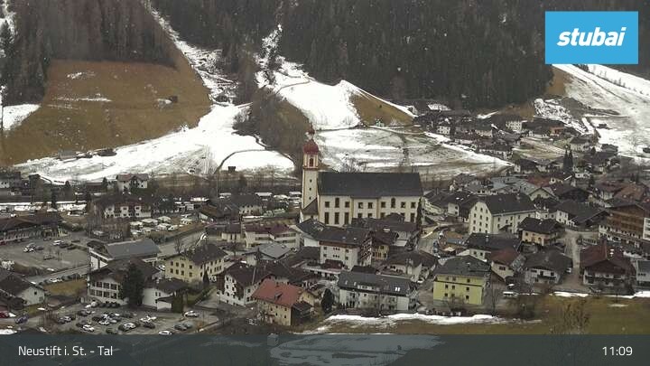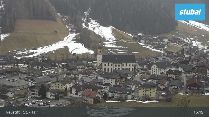 Die Webcam blickt auf den kleinen Ort Neustift im Stubaital.