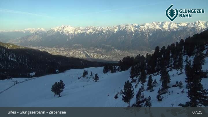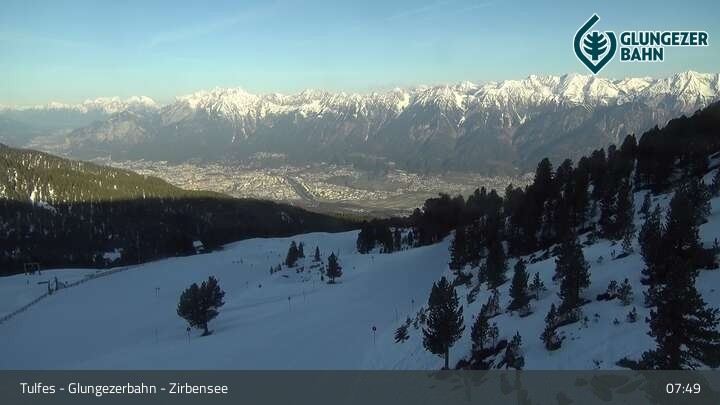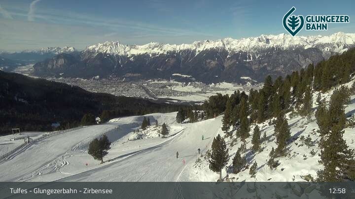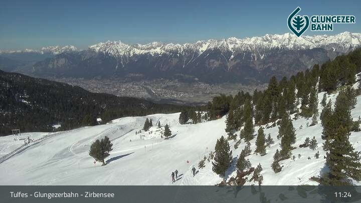 Die Webcam ermöglicht einen tollen Panoramablick auf die Landschaft am Glungezer. Das Bild wird unweit des Zirbensees aufgenommen.