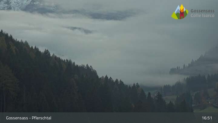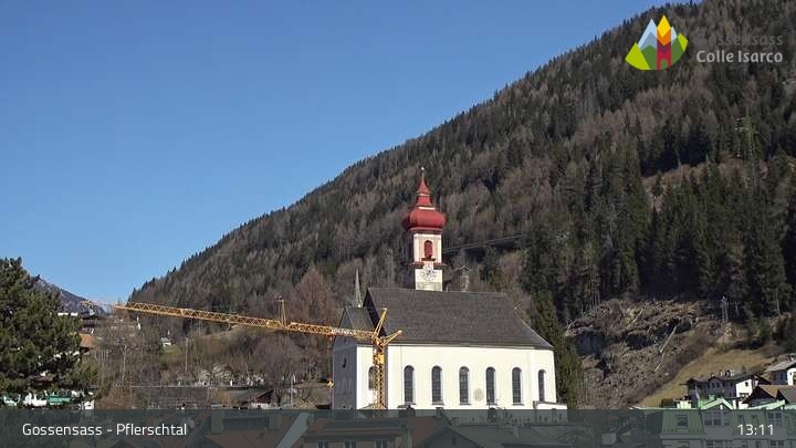 Die Kamera zeigt die Kirche Parrocchia San Valentino in Gossensass im Eisacktal.
