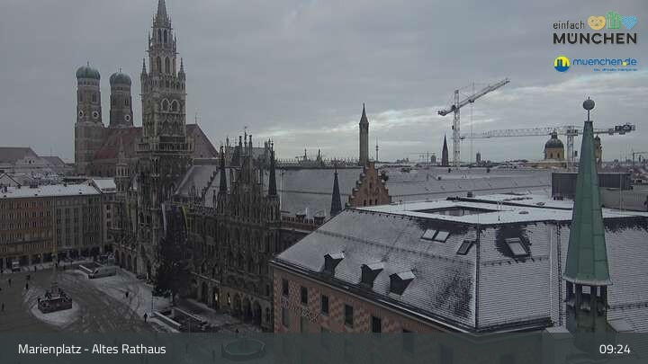 Die Webcam blickt vom Alten Rathaus auf den Marienplatz, der zentrale Platz der Münchener Innenstadt.