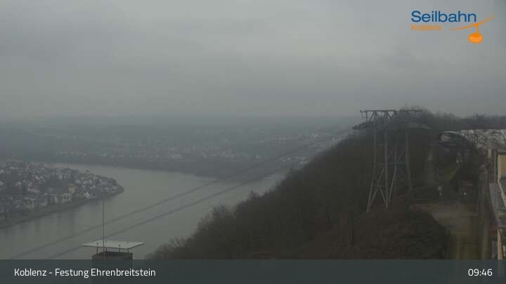 Webcam Koblenz: Blick von der Festung auf Seilbahn und Deutsches Eck, 160 m