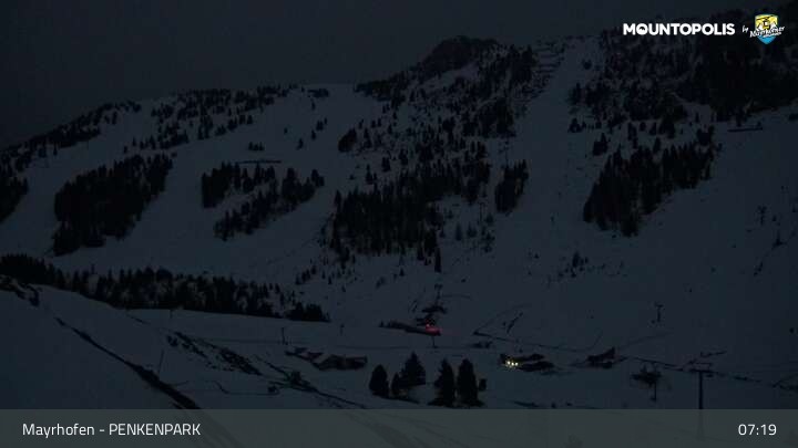 Hier blickst du auf den Vans Penken Park sowie den Sun-Jet Lift im Skigebiet Mayrhofen.