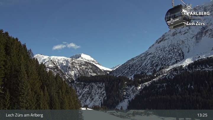 Die Kamera bietet einen schönen Ausblick auf den Ort Zug bei Lech Zürs am Arlberg und zeigt unter anderem auch die Zugerberg-Gondelbahn.