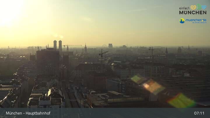 Diese Webcam zeigt dir einen Livestream über die Dächer von München, der Landeshauptstadt von Bayern und eine der größten Städte Deutschlands. Zu sehen ist das Areal des Hauptbahnhofes.