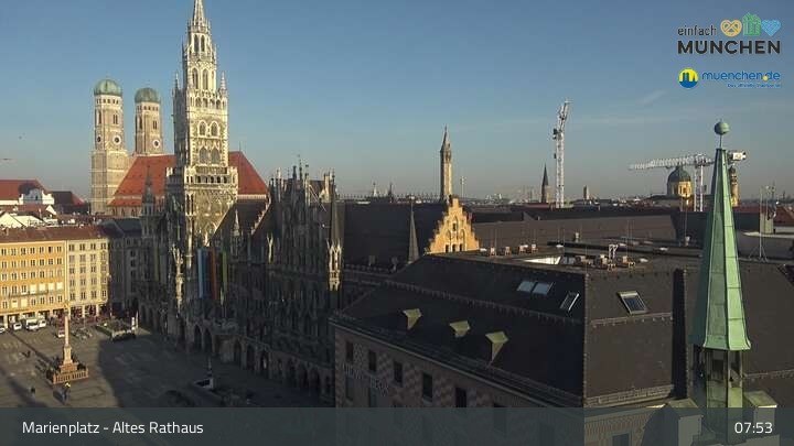 Die Webcam blickt vom Alten Rathaus auf den Marienplatz, der zentrale Platz der Münchener Innenstadt.