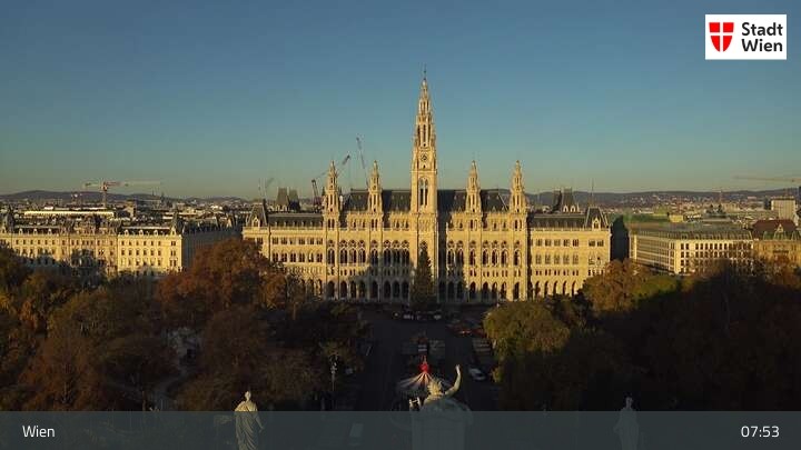 Die Webcam bietet dir einen Rundumblick über den ersten Wiener Bezirk. Du siehst das Burgtheater und das Rathaus.