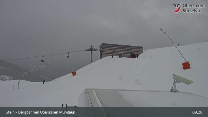 Die Webcam zeigt die Bergstation des Misanenga - Untermatt Lifts in Obersaxen in Graubünden. Die umliegende Alpenwelt ist ideal für Wanderungen und Mountainbiken geeignet.