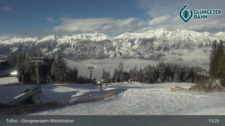 Die Webcam ist an der Mittelstation des Glungezer positioniert und zeigt einen tollen Panoramablick auf das Ski- und Wandergebiet in Tulfes.