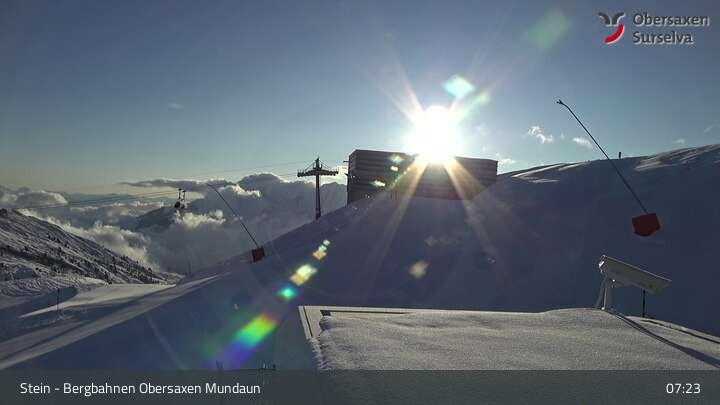 Die Webcam zeigt die Bergstation des Misanenga - Untermatt Lifts in Obersaxen in Graubünden. Die umliegende Alpenwelt ist ideal für Wanderungen und Mountainbiken geeignet.
