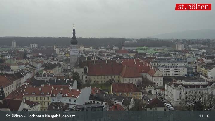 Die Webcam befindet sich in St. Pölten auf dem Dach des Hochhauses am Neugebäudeplatz und blickt über die Landeshauptstadt von Niederösterreich. Zu sehen ist unter anderem das Gebäude der Landesregierung und der Dom.