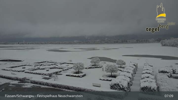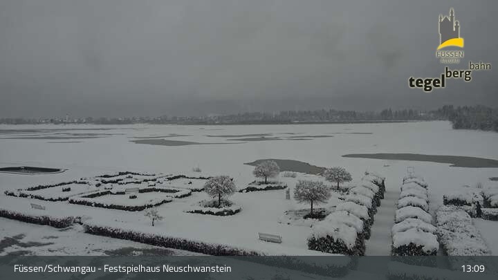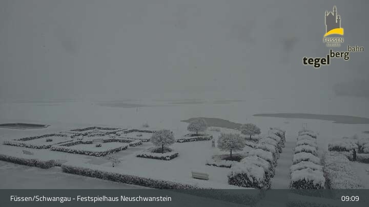 Die Webcam blickt auf den Garten von Ludwigs Festspielhaus in Füssen am Forggensee.