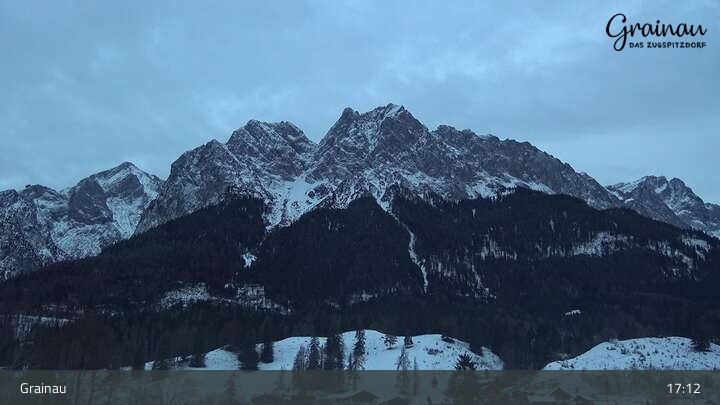Die Live-Webcam zeigt vom Freibad aus einen Rundumblick auf das Bergdorf Grainau und seine Umgebung. Zu sehen sind unter anderem die Zugspitze, der große und kleine Waxenstein sowie der Hohe Ziegspitz.