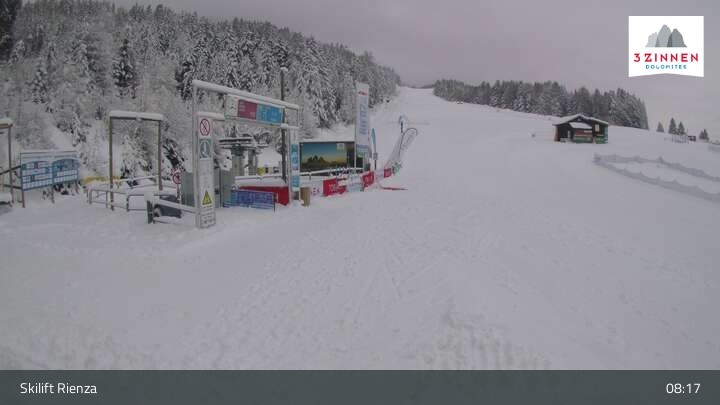 Hier siehst du im Winter aktuelle Aufnahmen aus dem Skigebiet Rienz, das sich südlich von Toblach im Hochpustertal befindet.