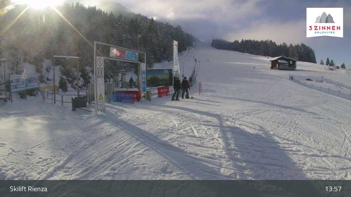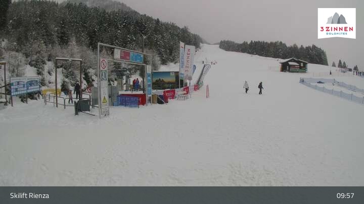 Hier siehst du im Winter aktuelle Aufnahmen aus dem Skigebiet Rienz, das sich südlich von Toblach im Hochpustertal befindet.