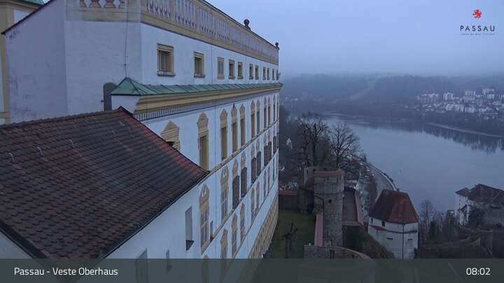 Die Webcam zeigt einen tollen Panoramablick von der Veste Oberhaus auf die Donau und die Altstadt von Passau. Neber der herrschaftlichen Burgfassade sieht man sehr gut die Landzunge zwischen Donau und Inn, auf der die Altstadt mit ihren denkmalgeschützten Häusern liegt. Gut zu erkennen sind unter anderem die Ortspitze am Zusammenfluss der drei Flüsse, das an der Donau liegende Rathaus, der weiße Dom St. Stephan und das erhöhte Kloster Mariahilf in der Innstadt.
