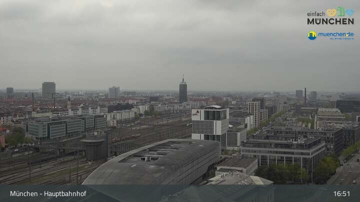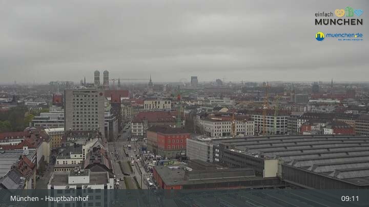 Diese Webcam zeigt dir einen Livestream über die Dächer von München, der Landeshauptstadt von Bayern und eine der größten Städte Deutschlands. Zu sehen ist das Areal des Hauptbahnhofes.