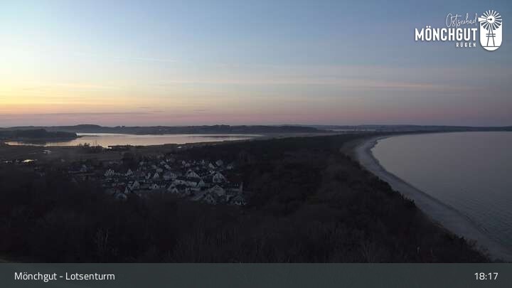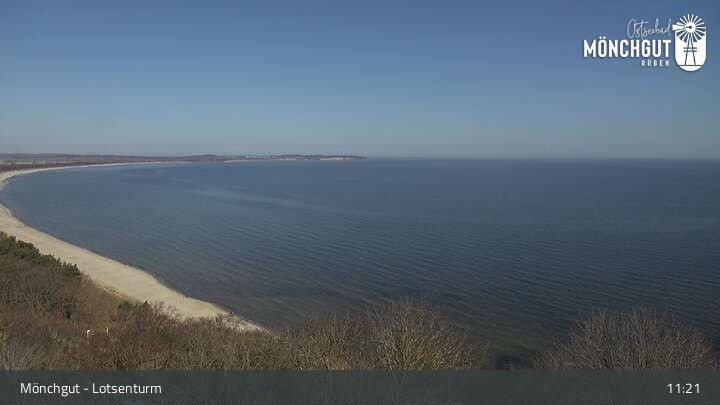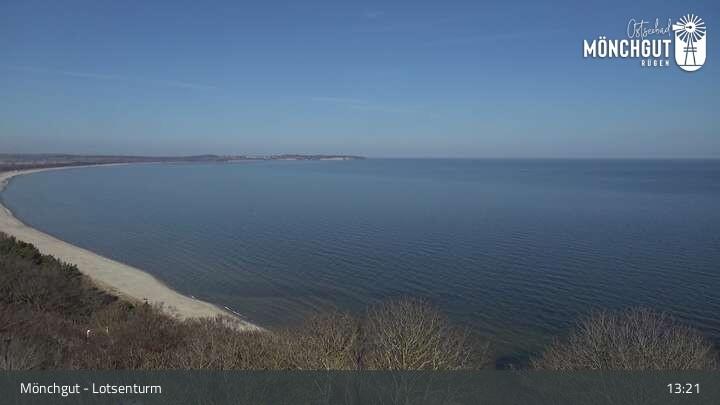 Die Webcam ist am Lotsenturm bei Thiessow positioniert und zeigt den Blick auf die Halbinsel Mönchgut, die zu Rügen gehört und an der Ostsee liegt.